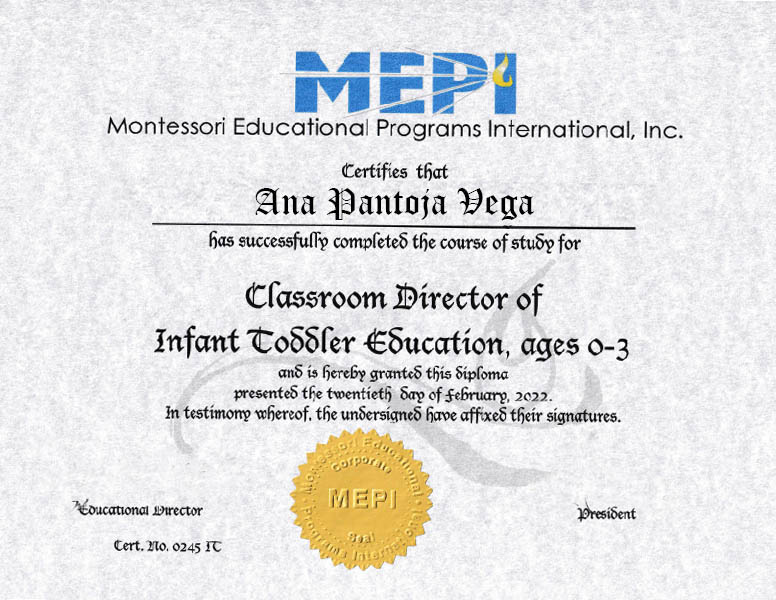 Certificado por Montessori de Latinoamerica por haber acreditado la formación.
